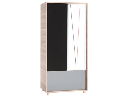 Evolve 2-Door Wardrobe, White and Black Wood HLJC02583 -